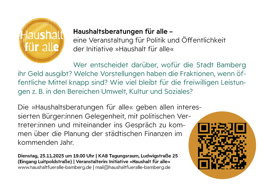 - Wir kommen miteinander ins Gespräch und tragen gemeinsam gute Ideen für die Gestaltung des Bamberger Haushalts zusammen.