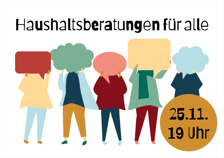 Wir organisieren Info- und Austauschveranstaltungen. Am 25.11. um 19 Uhr laden wir Politik und Öffentlichkeit zu „Haushaltsberatungen für alle“ ein.